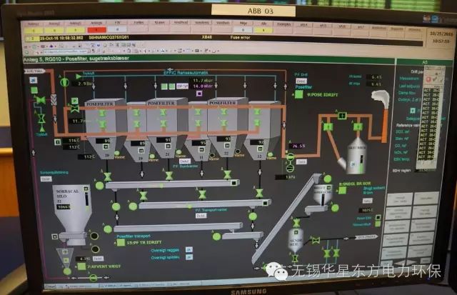 參觀完卸料大廳之后,我們一行人來到了主控室,并就一些排放數(shù)據(jù)問題與運(yùn)行人員進(jìn)行了交流。該廠的環(huán)保排放指標(biāo)也非常高,與Sysav相比的最大區(qū)別就是在脫硝工藝上沒有采用SCR工藝,因此NOx指標(biāo)略高些。