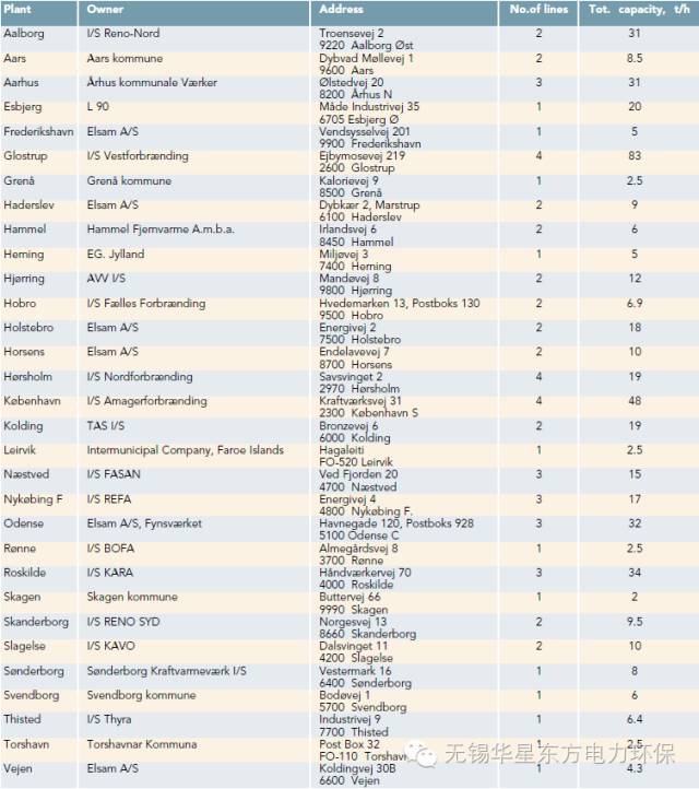 在考察之余,我們還調(diào)研了一下整個(gè)丹麥的焚燒廠分別情況,簡述如下: