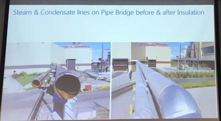 這座焚燒廠投運(yùn)于2014年,裝備精良,做工精湛,其采用了空冷島的設(shè)計(與我們山西大同項目很相似),尤其是彩瓦的材質(zhì)和施工質(zhì)量充分體現(xiàn)出了一個代表美國最新工藝水平的巔峰之作。對于彩瓦的材質(zhì)選擇和施工監(jiān)督,一直是我們所關(guān)注的重點(diǎn),對彩瓦應(yīng)當(dāng)嚴(yán)格要求采用連續(xù)瓦楞并確保足夠的厚度,才能體現(xiàn)出一個項目的質(zhì)感和品質(zhì),這也是我本人最關(guān)注的環(huán)節(jié)。