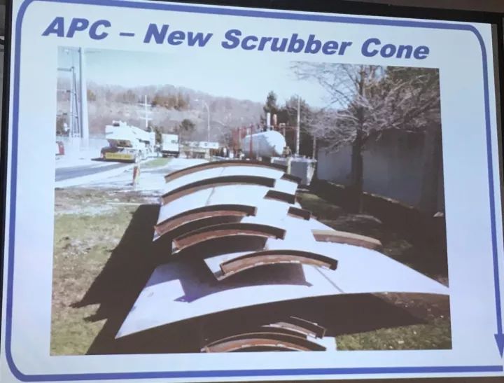 另一位是我們上次去美國參觀的一座焚燒廠的技術(shù)人員介紹了他們的一次最新的維修。這是Covanta旗下的美國紐約州的Onondago焚燒廠,由于我們是從事煙氣凈化系統(tǒng)的,我重點(diǎn)聽了一下他們煙氣區(qū)域的技改。這個廠在我上次去的時候,的確略顯破敗,已經(jīng)持續(xù)運(yùn)行了20來年了。說是技改,其實主要是對出渣系統(tǒng)、膨脹節(jié)、吸收塔錐體、除塵器灰斗、SNCR、DCS和CEMS的更新。看到這里,中國的土豪們是不是覺得老美好土,這么晚才上SNCR。