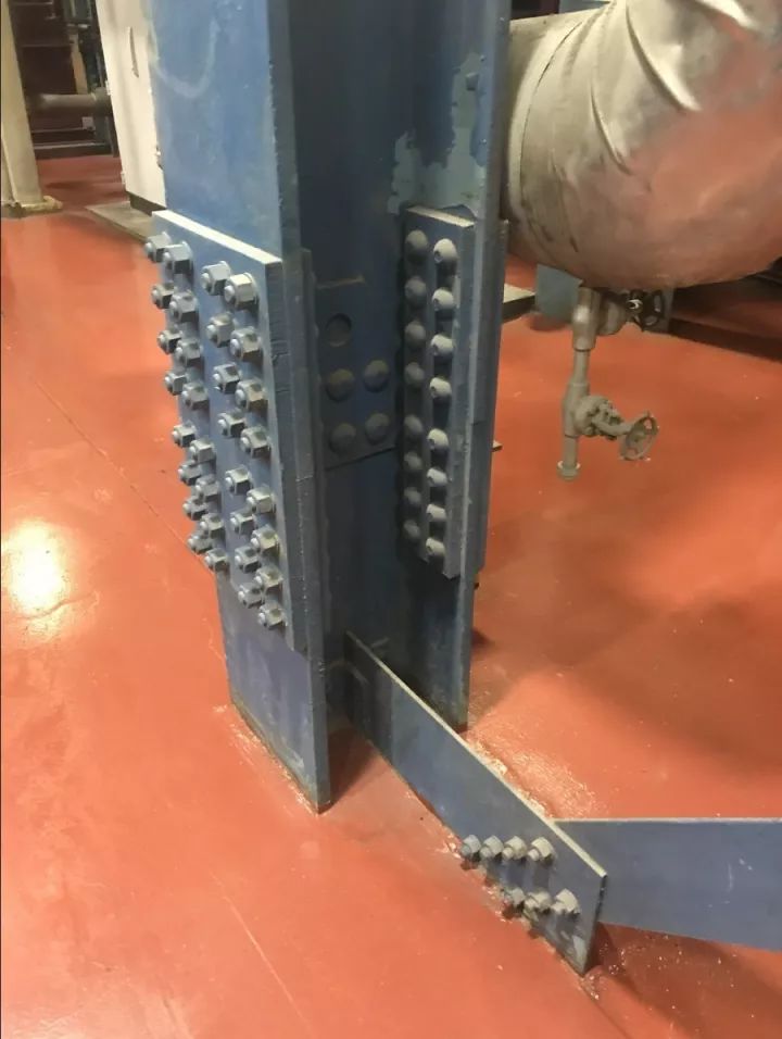 在參觀的閑暇之余,出于對鋼結(jié)構(gòu)的關(guān)心,我們還看了一下他們的結(jié)構(gòu)件的制作質(zhì)量。老美的鋼結(jié)構(gòu)清一色是高強(qiáng)度螺栓連接的高級貨,而我們國內(nèi)大部分煙氣廠商為了控制成本,采用焊接,定位螺栓+焊接的項目則較多。