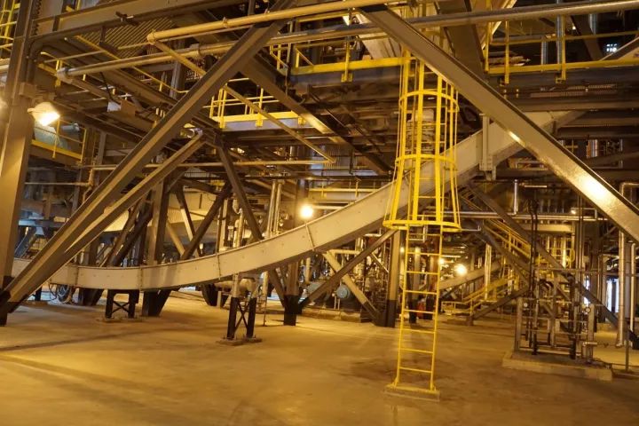 過度非常漂亮的刮板機(jī)抬升段。而更為獨(dú)特的設(shè)計是將除塵器下的2側(cè)灰斗的飛灰匯集到一根刮板機(jī),同時與吸收塔底部排灰串聯(lián)設(shè)計,這足見其對飛灰及霧化水準(zhǔn)的控制能力。而國內(nèi)由于運(yùn)行人員對設(shè)備開啟順序的不熟悉以及設(shè)備本身的不穩(wěn)定,造成運(yùn)行初期大量就地掏灰、排灰現(xiàn)象頻出,使得一些新投產(chǎn)項目就不得不面臨車間環(huán)境污染,導(dǎo)致形象受損。