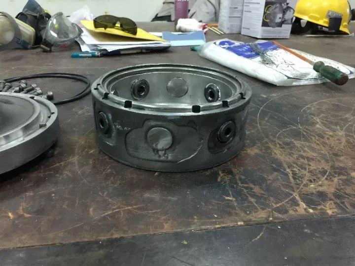 鑒于國(guó)內(nèi)石灰漿泵磨損問(wèn)題,特地提了一下,得到的回復(fù)是他們同樣有這個(gè)問(wèn)題,但是他們維修工人動(dòng)手能力很強(qiáng),不像國(guó)內(nèi)部分廠家,設(shè)備損壞了就更換配件甚至更新成套設(shè)備,他們是自已用高鉻焊接材料去堆焊葉輪然后重新按原尺寸打磨,在參觀時(shí)也正遇上了正在維修葉輪的漿泵。