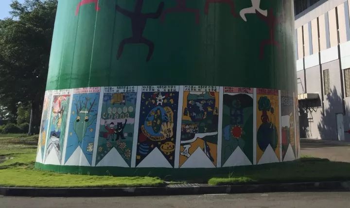 上圖為煙囪上小學(xué)生繪畫(huà)