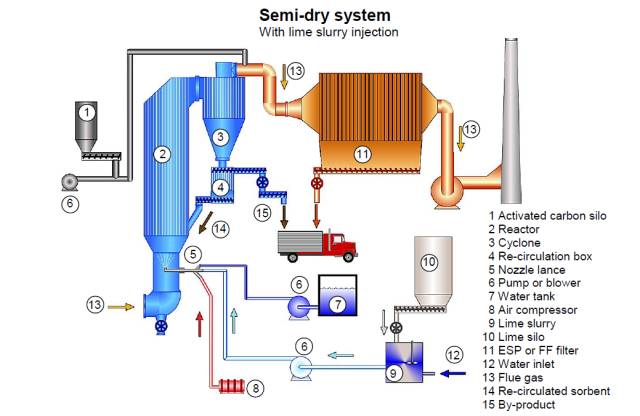 系統(tǒng)配置和國(guó)內(nèi)的工藝路線一樣,但臺(tái)灣2000年就有這樣的高配置,還是比國(guó)內(nèi)超前不少。爐排焚燒爐+SNCR+SDA+消石灰粉噴射+活性炭吸附+布袋除塵器+飛灰穩(wěn)定化處理,爐排采用日本田雄順推爐排,SNCR還原劑采用尿素顆粒制作溶液,SDA的霧化器采用NIRO產(chǎn)品(據(jù)說(shuō)臺(tái)灣只有NIRO和KS兩種品牌),干粉和活性炭給料采用日本進(jìn)口盤(pán)式給料機(jī)(都不計(jì)量),活性炭采用煤質(zhì)活性炭,比表面積900m2/g,布袋除塵器的過(guò)濾單元采用韓國(guó)奇藝產(chǎn)品(臺(tái)灣的垃圾燒電廠的多數(shù)使用奇藝和戈?duì)柶放疲7€(wěn)定化工藝用水泥+螯合劑(硫基),石灰漿采用消石灰,純度為90%,濃度為12%(沒(méi)有達(dá)到NIRO要求的>20%)。