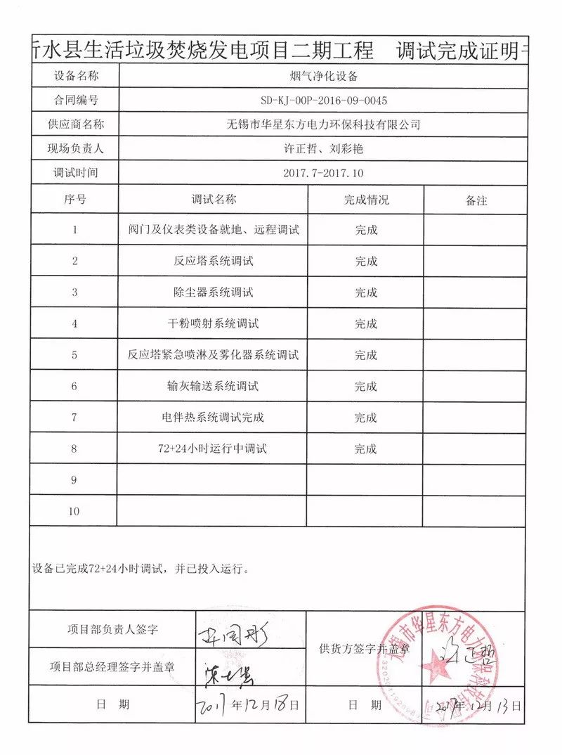 我公司中標(biāo)承建的山東臨沂沂水二期1x300t/d垃圾焚燒煙氣凈化工程于12月18日通過整體竣工驗(yàn)收,整體工程項(xiàng)目竣工。煙氣處理工藝半干法脫酸+干法+活性炭噴射+布袋除塵器,現(xiàn)整個(gè)系統(tǒng)現(xiàn)運(yùn)行穩(wěn)定,為我公司 EPC項(xiàng)目。