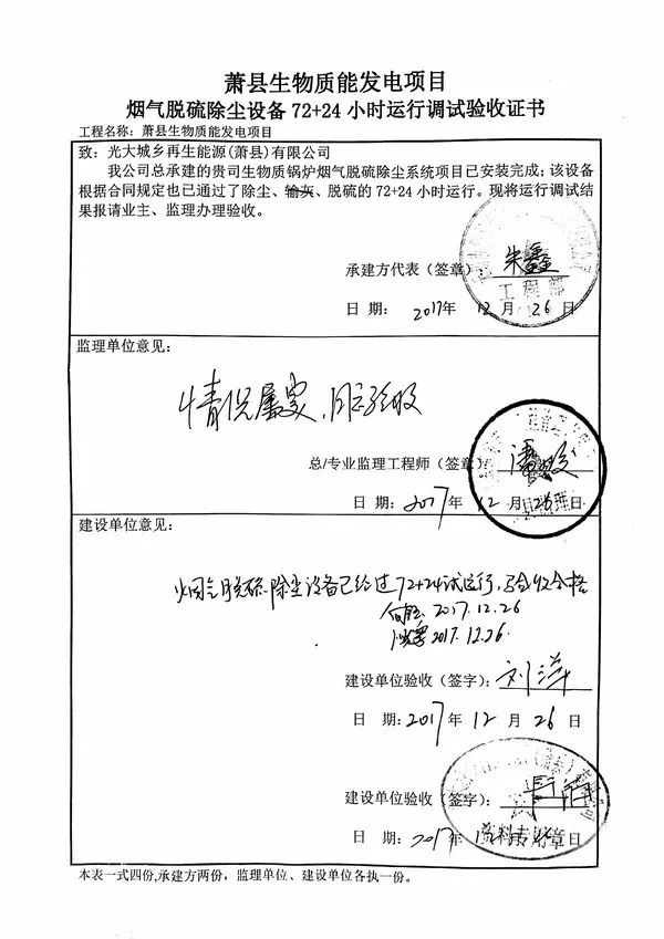 我公司中標(biāo)承建的安徽蕭縣1x130t/h高溫高壓生物質(zhì)燃料鍋爐煙氣凈化工程于12月26日通過72+24小時驗收,煙氣處理工藝采用預(yù)除塵器(旋風(fēng)分離器)+干法脫硫系統(tǒng)+布袋除塵器系統(tǒng)+工藝水系統(tǒng),現(xiàn)整個系統(tǒng)現(xiàn)運行穩(wěn)定,為我公司 EPC項目。
