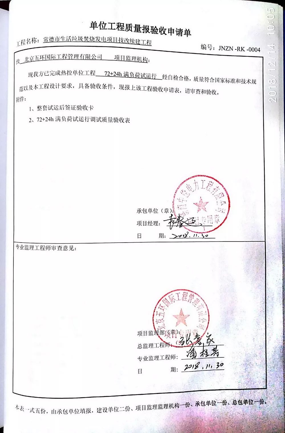 我公司中標承建的湖南常德1x660t/d爐排爐煙氣凈化工程項目于2017年7月28日開工建設(shè),于2018年11月30日通過72+24小時竣工驗收。