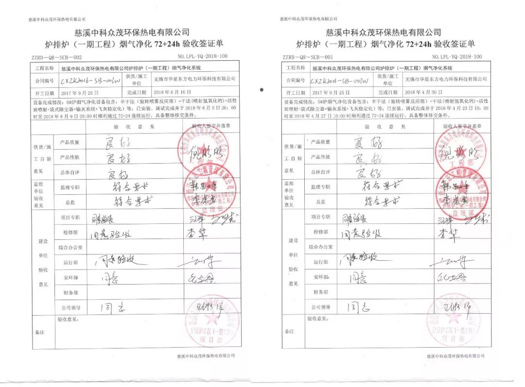 我司中標(biāo)承建的浙江慈溪生活垃圾焚燒廠3x750t/d爐排爐煙氣凈化工程,一期工程2x750t/d于2018年6月遞交竣工申請,通過近半年的試運(yùn)行,該工程于近日通過竣工驗(yàn)收。