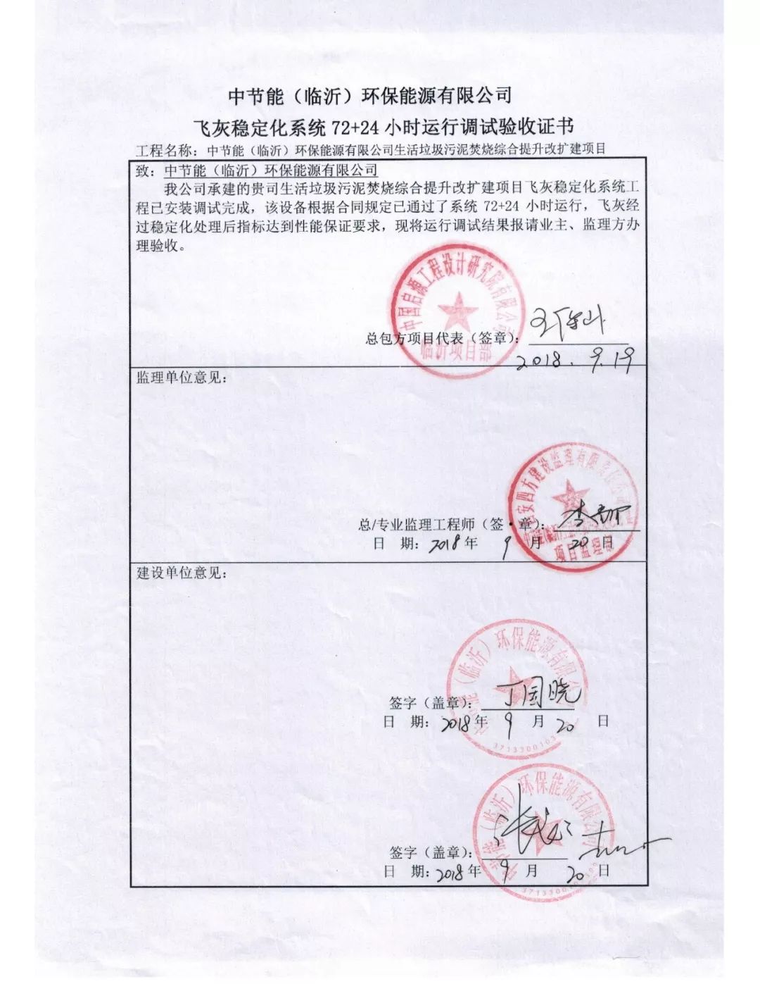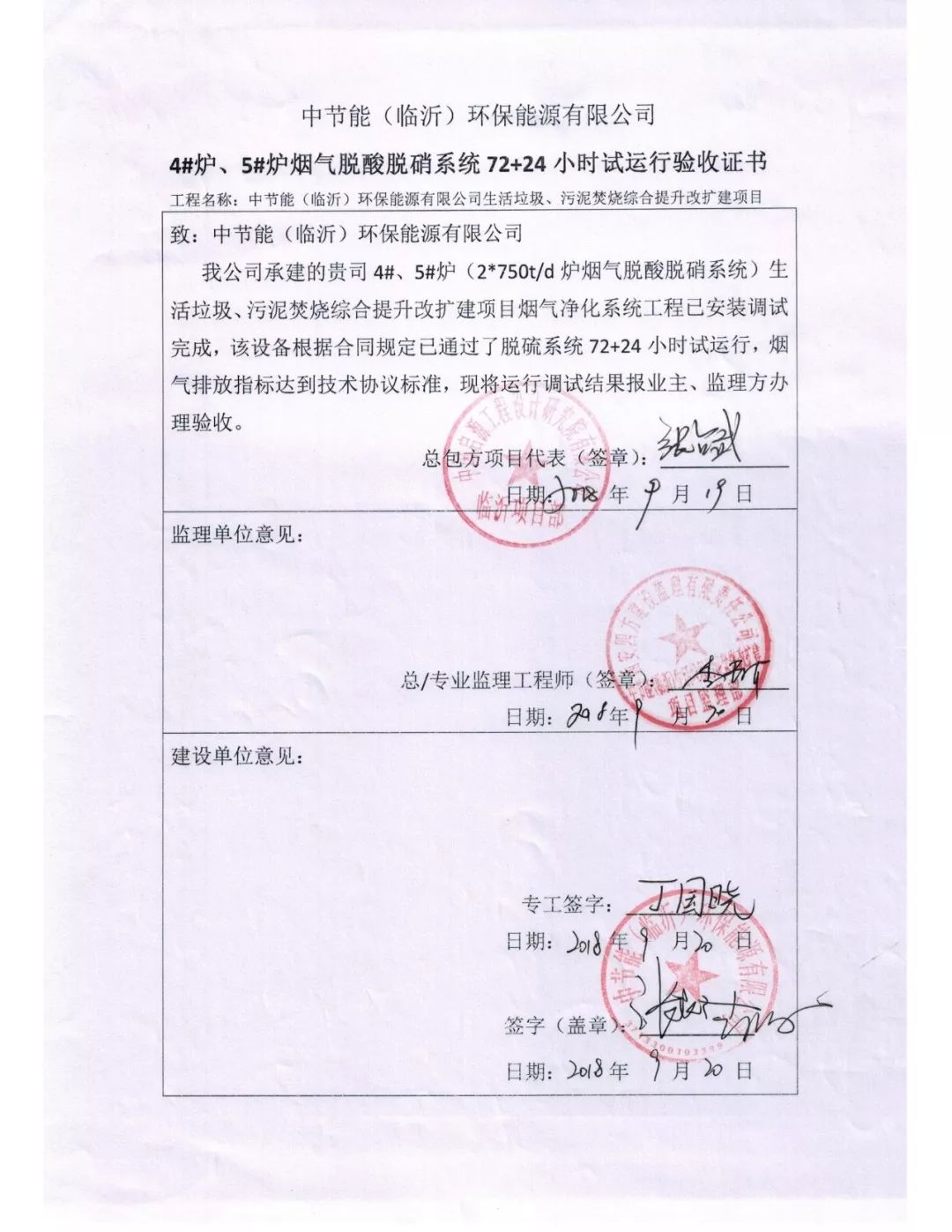 我司中標承建的山東臨沂生活垃圾、污泥焚燒綜合提升改擴建項目 2x750t/d爐排爐煙氣凈化工程,于2018年9月完成調試及試運行驗收,通過近半年的運行,現(xiàn)該工程已進入穩(wěn)定運行階段,各系統(tǒng)參數正常,排放指標滿足設計要求。