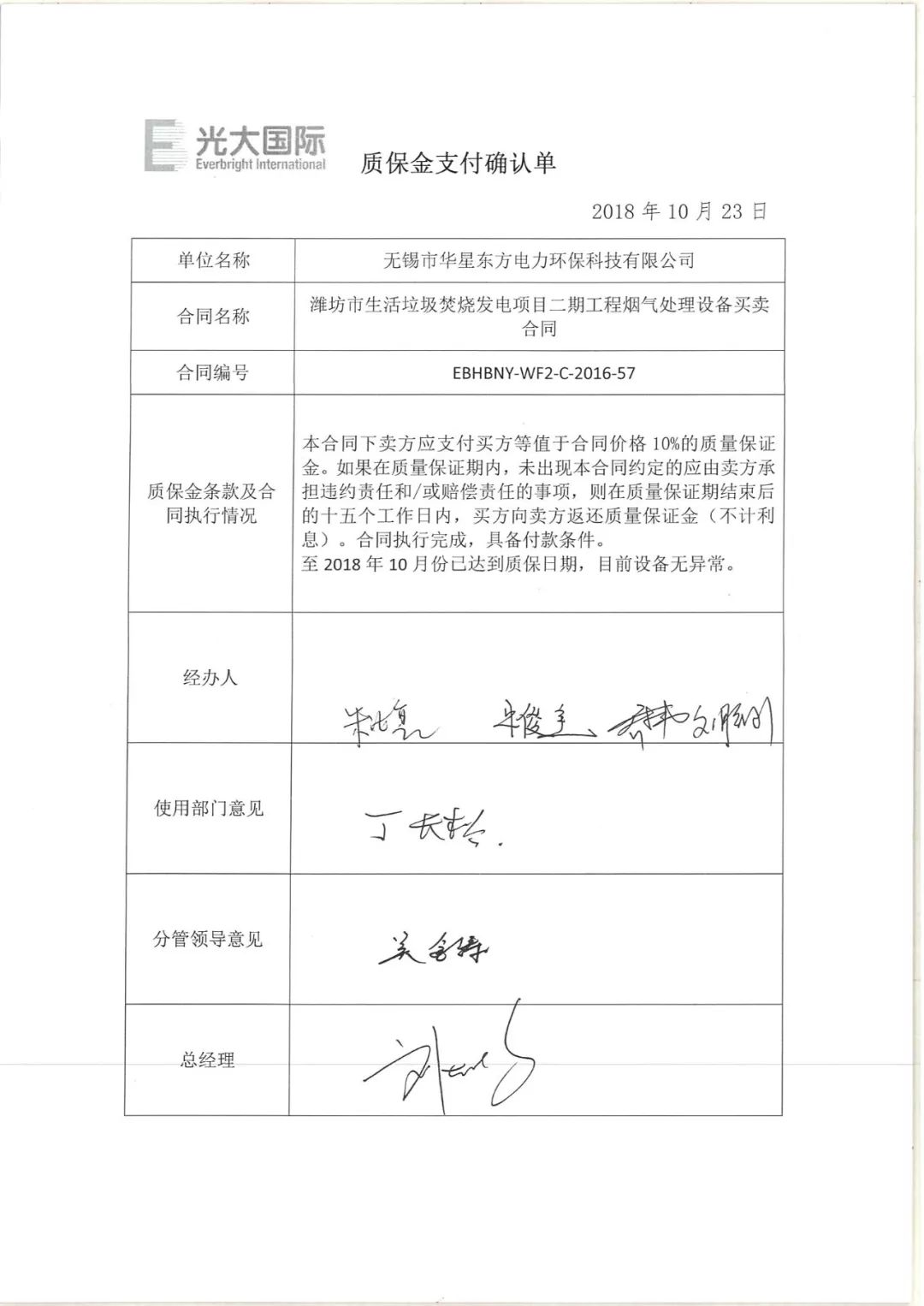 我公司承建的山東濰坊3x500t/d生活垃圾焚燒項(xiàng)目二期工程于2017年7月30日竣工。
