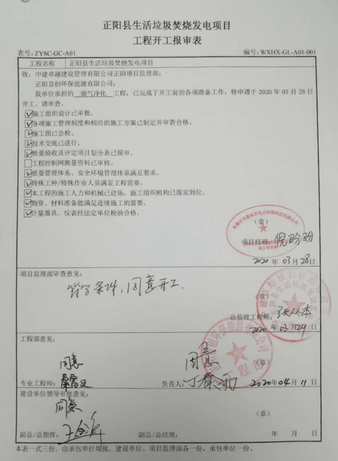 我公司承建的河南省駐馬店市正陽縣生活垃圾焚燒發(fā)電項目煙氣凈化工程于2020年3月28日開工建設(shè),現(xiàn)已進(jìn)入主體設(shè)備安裝環(huán)節(jié)。