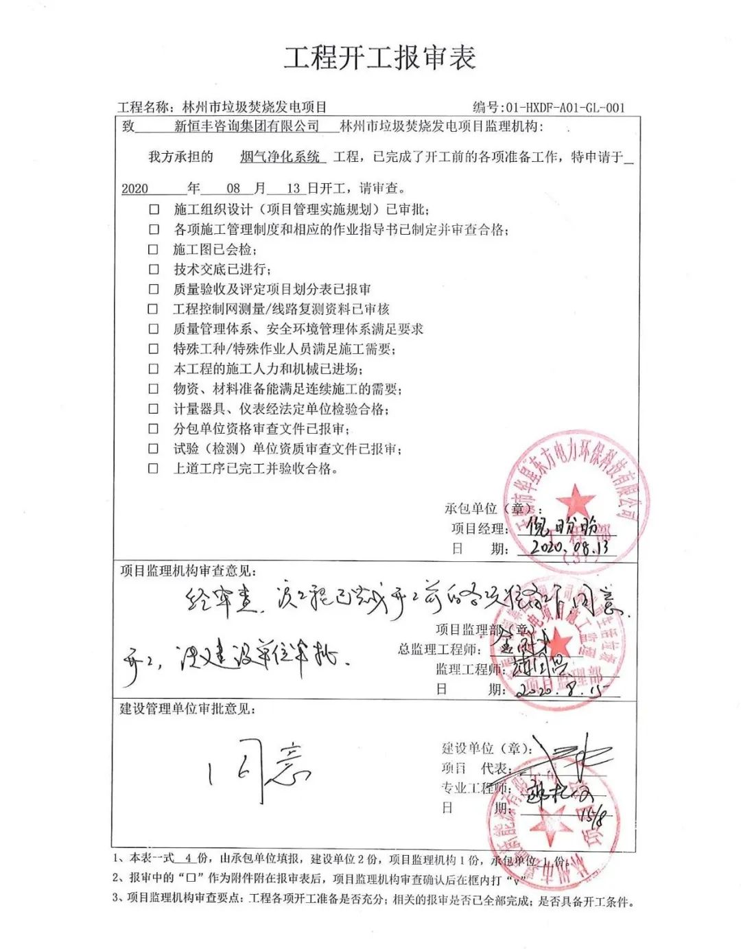 我公司承建的河南省林州市垃圾焚燒發(fā)電項(xiàng)目煙氣凈化工程于2020年8月13日開工建設(shè),現(xiàn)已進(jìn)入灰斗吊裝環(huán)節(jié)。