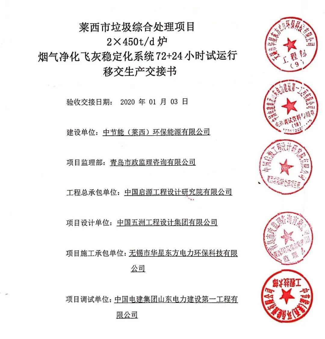 我公司承建的中節(jié)能(萊西)生活垃圾焚燒發(fā)電項目煙氣凈化工程于2020年1月3日通過竣工驗收。