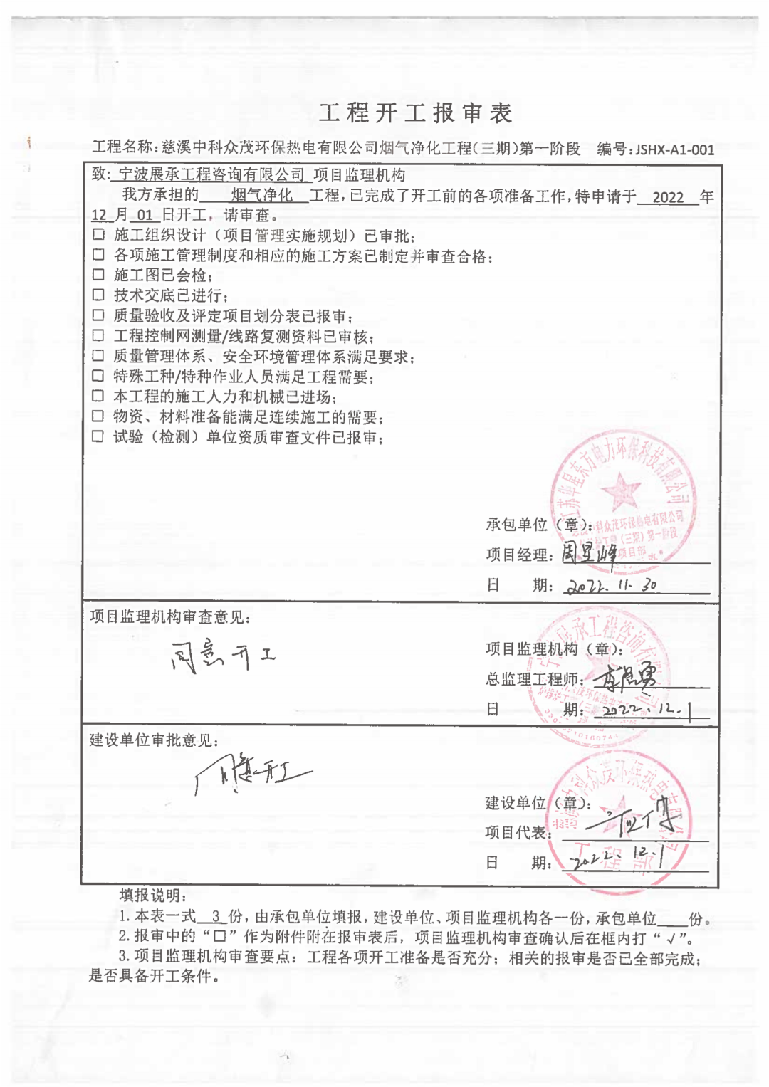 我公司承建的浙江省寧波市慈溪生活垃圾焚燒發(fā)電項目三期煙氣凈化工程于2022年11月30日開工建設(shè)。