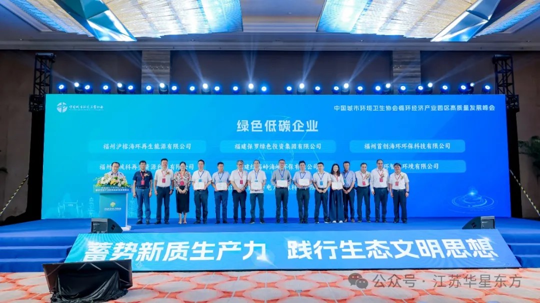 喜報!中國城市環(huán)境衛(wèi)生協(xié)會循環(huán)經(jīng)濟產(chǎn)業(yè)園區(qū)高質(zhì)量發(fā)展峰會順利召開,華星東方榮獲“綠色低碳企業(yè)”證書