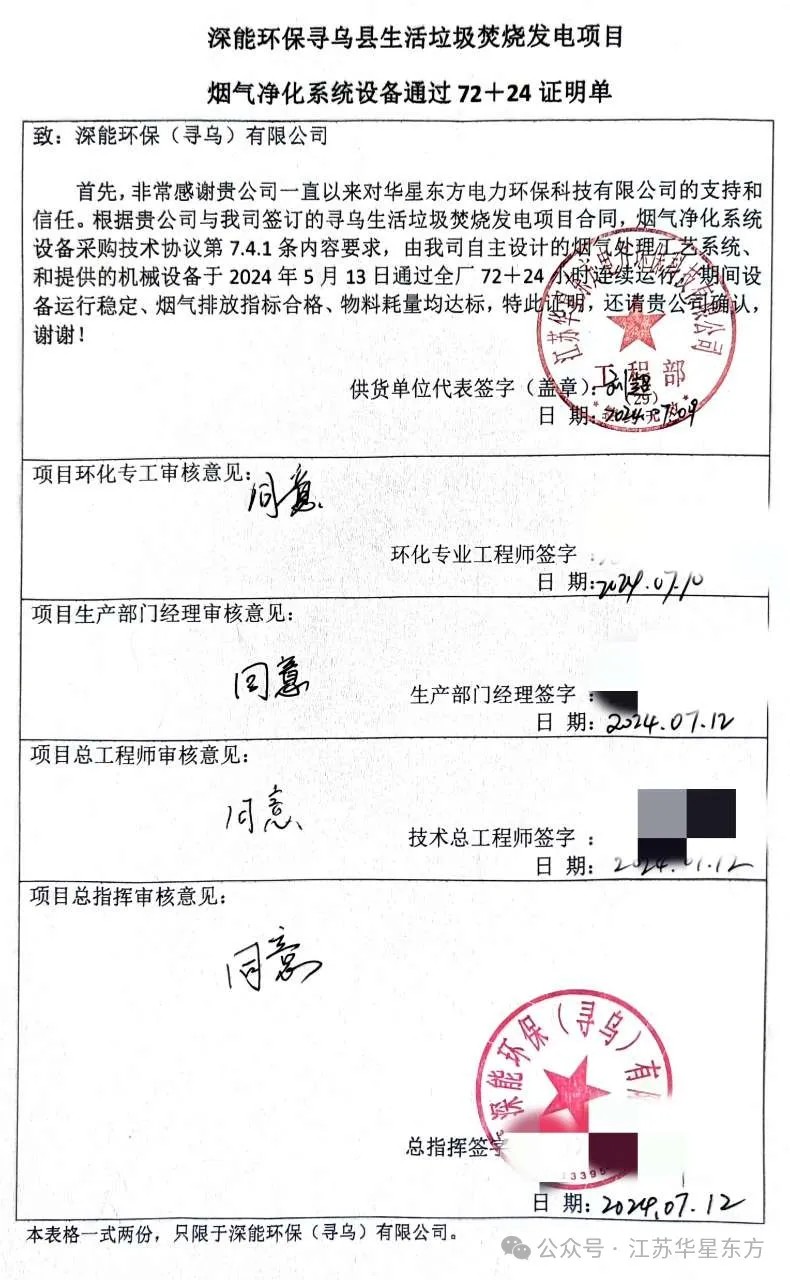我公司承建的江西省贛州市尋烏生活垃圾焚燒發(fā)電項(xiàng)目煙氣凈化工程于2024年5月13日通過(guò)72+24小時(shí)試運(yùn)行。 The flue gas cleaning engineering of Xunwu household waste incineration Power generation in Ganzhou City of Jiangxi Province, undertaken by our company, has passed the 72-hour + 24-hour trial operation since May 13th, 2024.