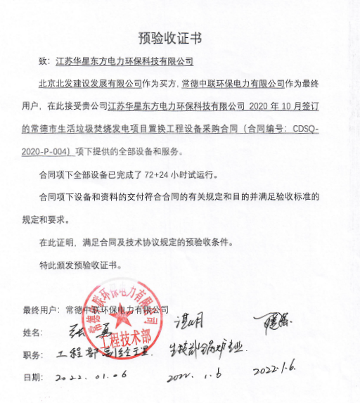 The flue gas cleaning (FGC) project undertaken by Huaxing for Phase III of Changde waste incineration power plant in Hunan Province passed 72+24 hours trial operation on January 6, 2022.
