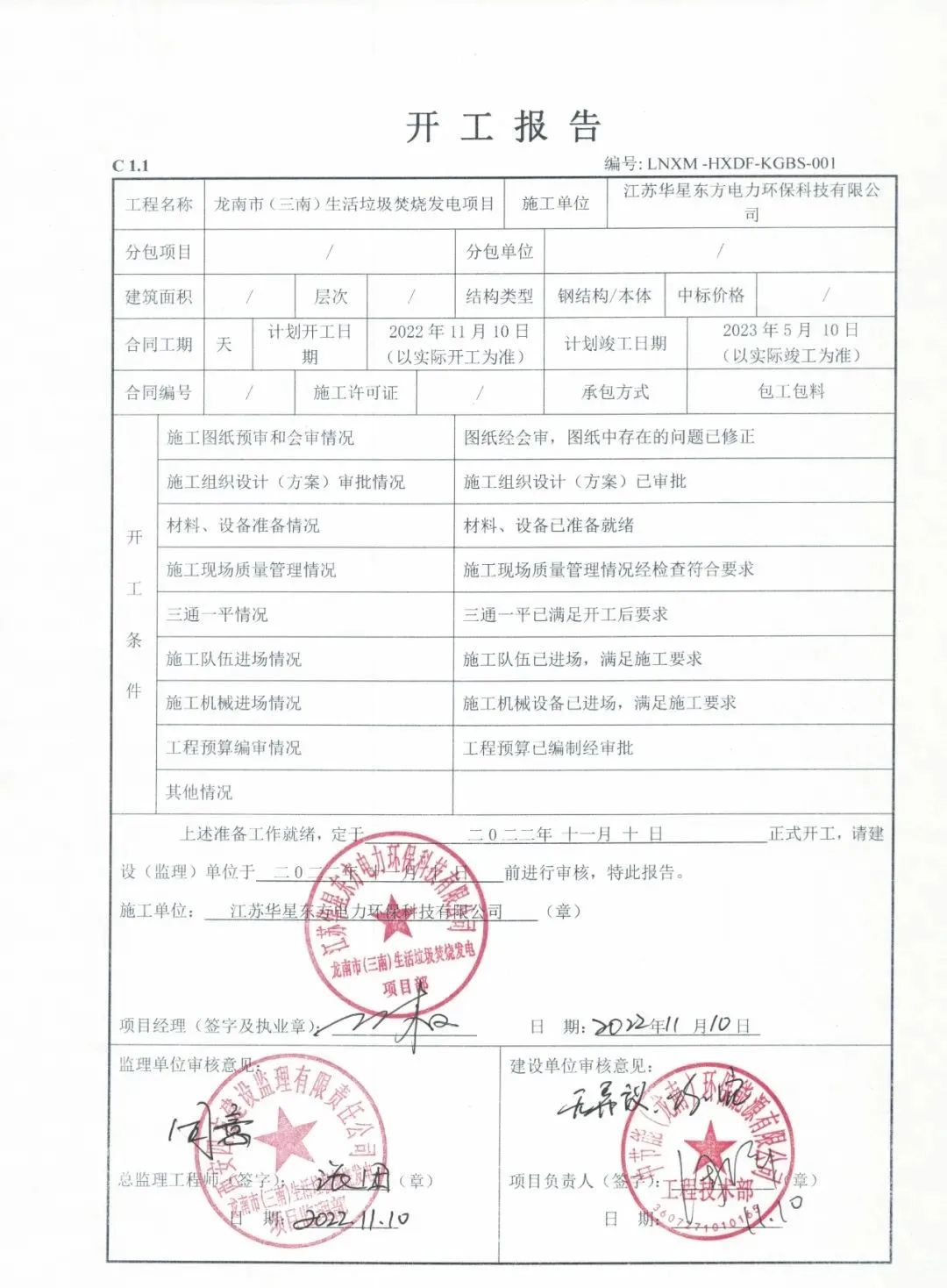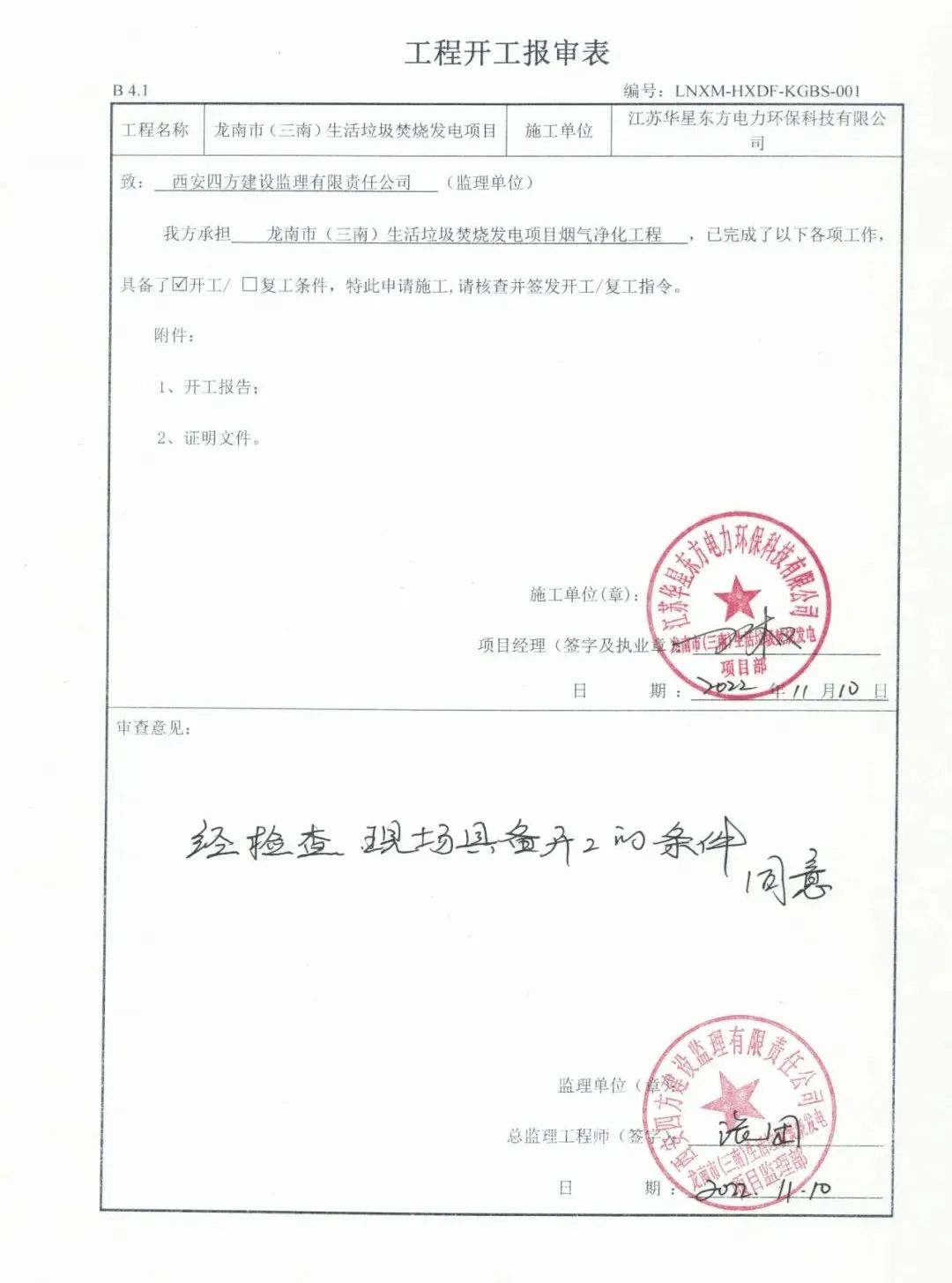 The FGC project undertaken by Huaxing for Longnan (Sannan) Waste-to-Energy plant in Jiangxi Province was commenced on November 10, 2022.