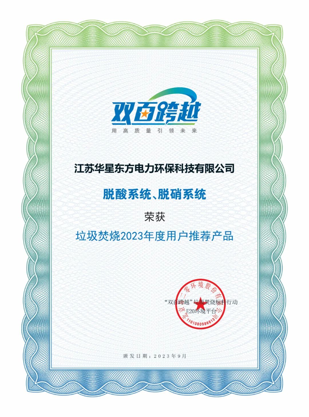 Jiangsu Huaxing East Co. won the title of Waste Incineration (Waste Incineration) in the two product lists of "User Nominated Product Brand of the Year" and "User Recommended Product of the Year" for key equipment products in the field of waste incineration, which was announced at the E20 Environmental Platform 2023 (10th) Shanghai Solid Waste Hotspot Forum. Deacidification system, denitrification system) 2023 user recommended products!