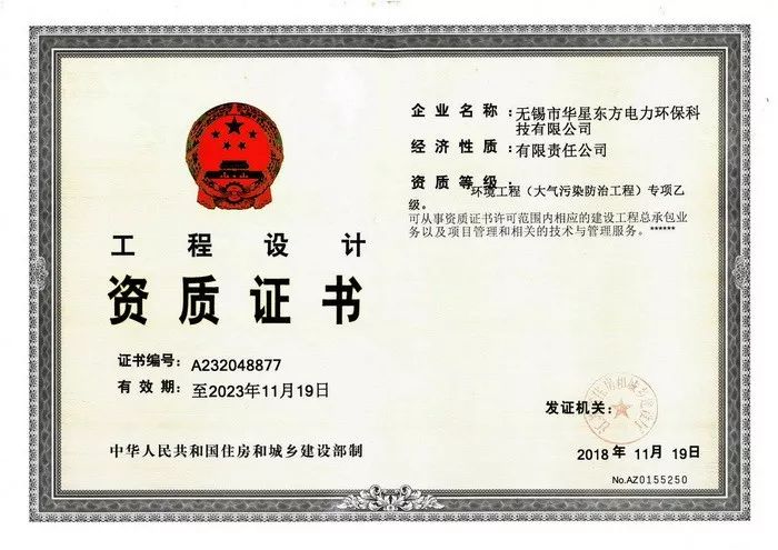 歷經(jīng)多年的人員及工程設(shè)計(jì)經(jīng)驗(yàn)積累,我公司于2018年11月19日獲批并取得了工程設(shè)計(jì)資質(zhì)證書(shū)(環(huán)境工程-大氣污染防治工程專項(xiàng)乙級(jí))。此證書(shū)的取得,不僅是對(duì)公司諸位同仁多年辛勞作出的肯定,更是公司軟實(shí)力的有力提升,極大的堅(jiān)定了我們從事環(huán)保事業(yè)的信心與決心,愿我們與其他環(huán)保人一起攜手,共同捍衛(wèi)全人類的碧水藍(lán)天。