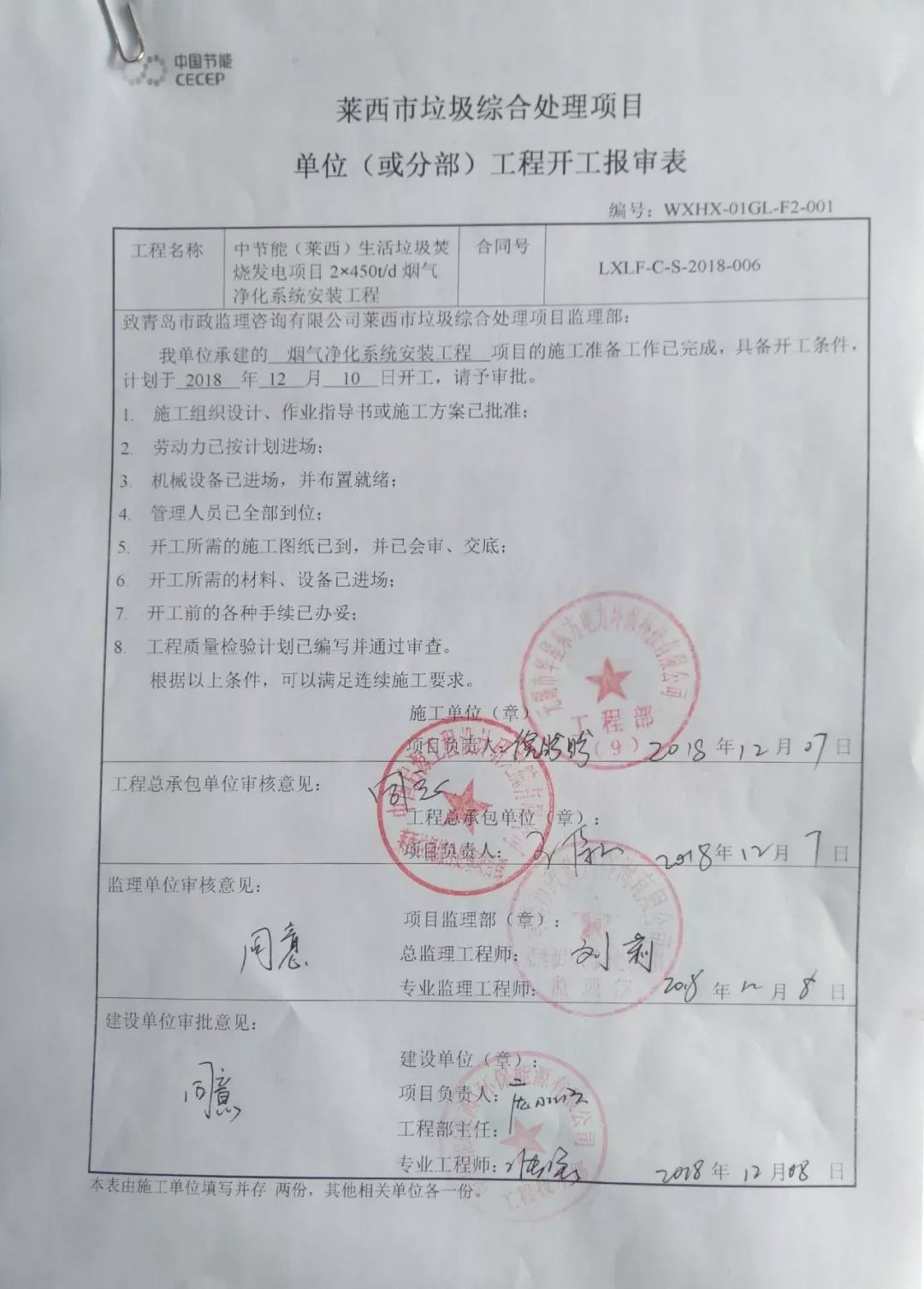 我公司承建的中節(jié)能(萊西)生活垃圾焚燒發(fā)電項(xiàng)目煙氣凈化工程于2018年12月10日開工,目前1號爐正在調(diào)試運(yùn)行中,2號爐將于2019年11月中旬進(jìn)入熱態(tài)調(diào)試。