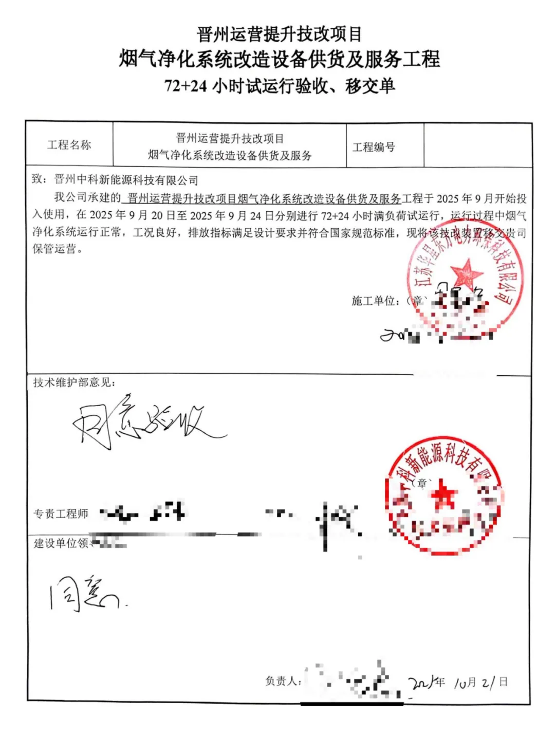 我公司承建的河北省石家莊市晉州市生活垃圾焚燒發(fā)電提升技改項(xiàng)目煙氣凈化工程于2025年09月24日通過72+24小時試運(yùn)行。 The FGC system constructed by our company for the upgrading of Municipal Solid Waste Incineration Power Plant in Jinzhou, Shijiazhuang, Hebei Province has successfully passed the 72-hour + 24-hour trial operation since 24th. Sep 2025.