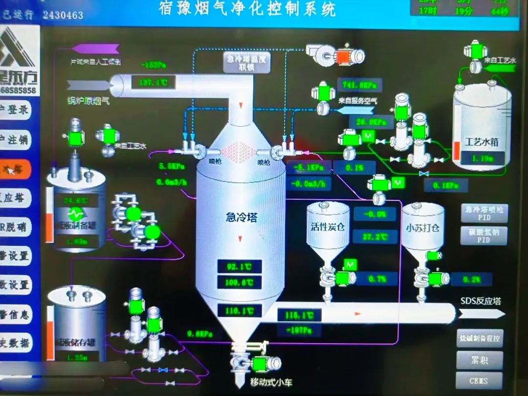 該項(xiàng)目煙氣處理采用“換熱器匯總煙氣+急冷脫酸塔+SDS小蘇打脫硫+陶瓷過濾除塵器+SCR脫硝+脫硫脫硝引風(fēng)機(jī)(甲方供貨我司安裝)”的煙氣凈化工藝,為我司EPC工程。此次項(xiàng)目的煙氣凈化系統(tǒng)使用了由江蘇華星東方自主研發(fā)的陶瓷濾筒、低溫催化二噁英分解和小蘇打干法應(yīng)用等全新工藝。 The plant FGC applied the process of "heat exchanger gas-collection + quench reaction tower + SDS sodium bicarbonate desulfurization + ceramic filter + SCR denitrification + ID fan". It is an EPC project of Huaxing. The FGC system applied new technologies such as ceramic filter cartridge, low-temperature catalytic decomposition of dioxins, and sodium bicarbonate dry process, which are independently developed by Huaxing.
