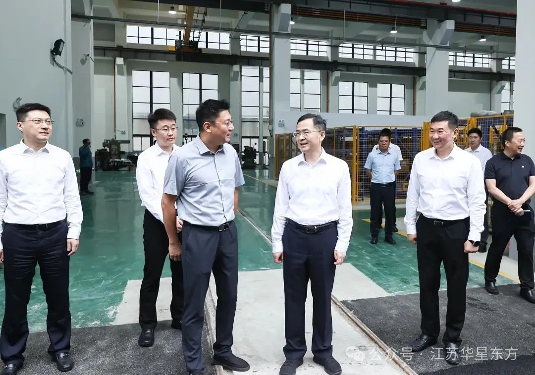On June 5, Binhu District Party Committee Secretary Sun Haidong, District Leader Xue Haoyue, Liyuan Development Zone Party Working Committee Secretary Wang Zijian and officials at all levels visited Huaxing’s Wuxi Manufacturing and R&D Center to investigate and observe the high-quality development of the district's low-carbon and environmentally friendly industries. Huaxing's chairman, deputy general manager and other relevant personnel accompanied the visit and expressed a warm welcome to the officials.